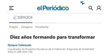 La Federación Aragonesa de Solidaridad (FAS) y la Cátedra de Cooperación para el Desarrollo de…